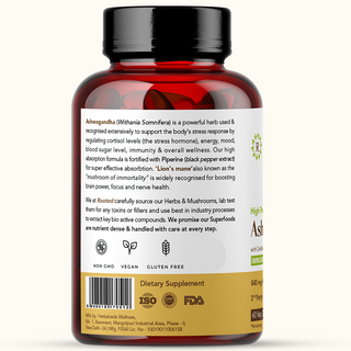 Ashwagandha extract with Lions Mane & Black pepper extract for Stress, Focus & Mood Balance with 5% Withanolides