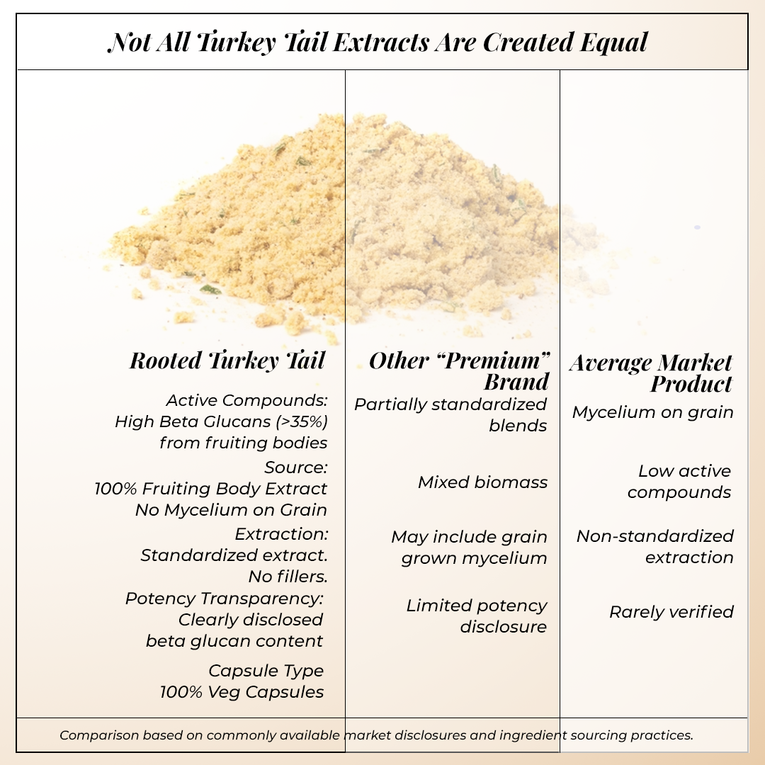 Pure fruit body extract of grown Turkey Tail mushrooms, Hot Water based extraction in a certified GMP facility