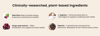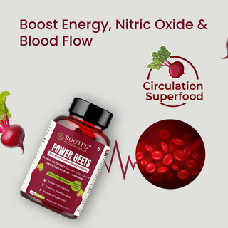 Beetroot is known to naturally boost nitric oxide levels in the body, supporting blood vessel health, better circulation, and cardiovascular performance. Each serving of Power Beets Capsules delivers 690mg of potent beetroot extract, enhanced with L-Arginine and Grape Seed Extract to further support blood flow, heart function, and natural energy.