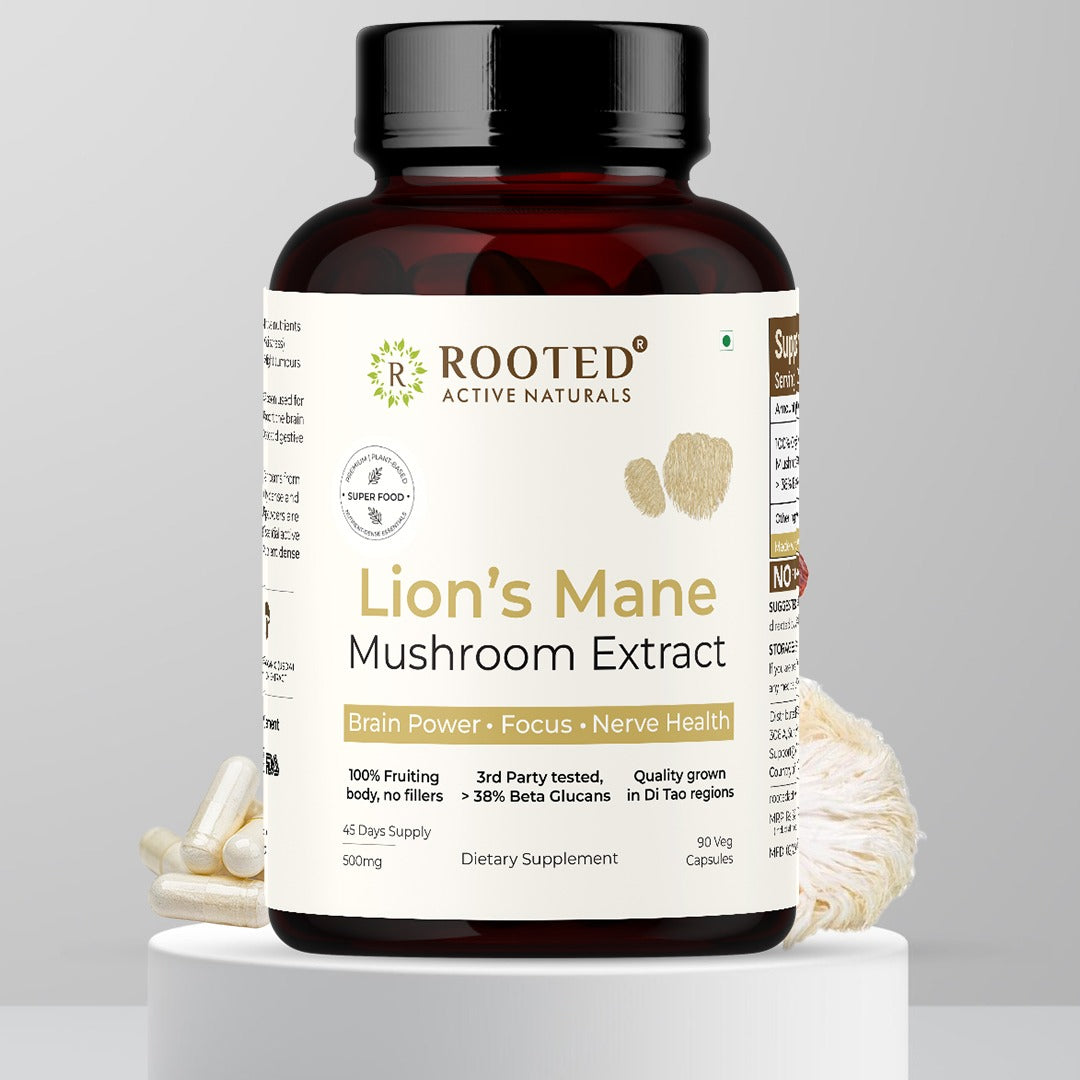 Organic Lion's Mane mushroom Extract for Focus, Memory & Cognitive wellness (90 Veg Capsules)