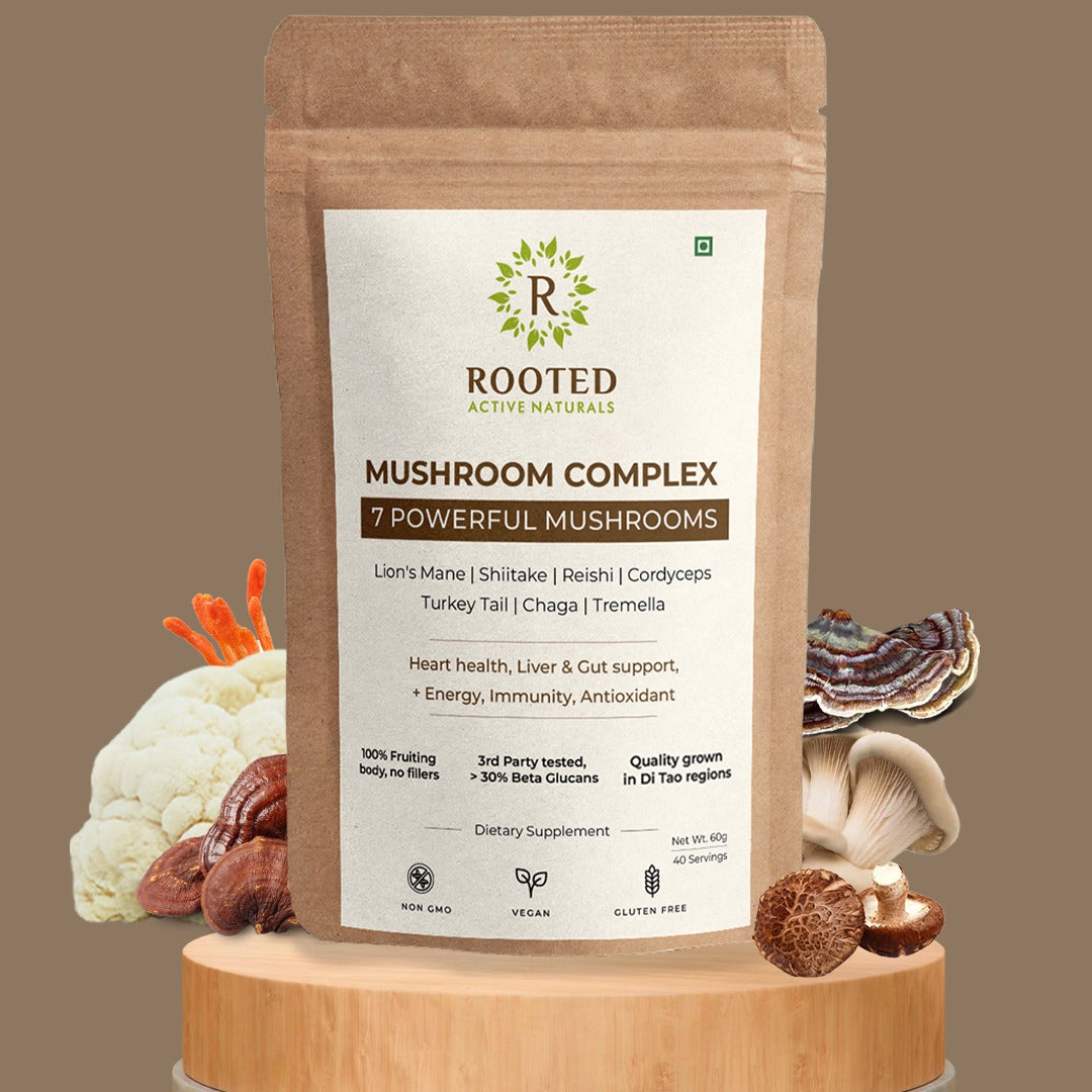 This 7 Mushroom Complex is your daily all-in-one supplement for modern Indian lifestyles crafted to support focus, immunity, energy, digestion, stress resilience, and liver detox.
