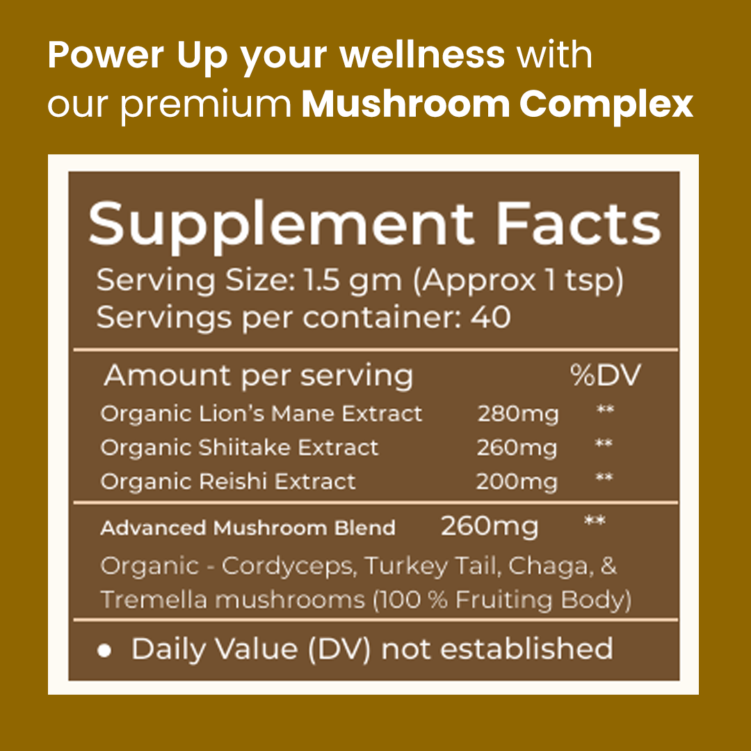 This 7 Mushroom Complex is your daily all-in-one supplement for modern Indian lifestyles crafted to support focus, immunity, energy, digestion, stress resilience, and liver detox.