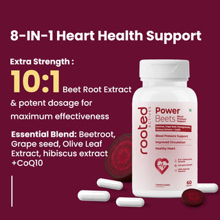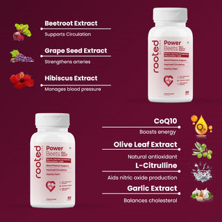 Power Beets BP Support is a complete cardio health formula designed to help maintain balanced blood pressure and support long-term heart performance. It combines Beetroot, Grape Seed, Pomegranate, Hibiscus, and CoQ10 natural nitric oxide boosters and antioxidants that improve circulation, oxygen flow, and stamina. Designed for active individuals, it’s a clean, non-stimulant way to support stamina, blood flow, and long-term heart performance.