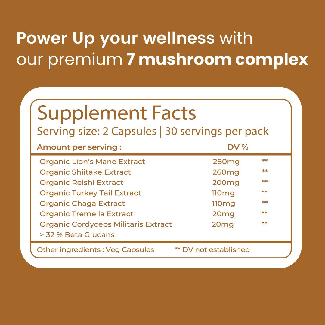 7 Mushroom Complex Capsules are your daily ritual for whole-body wellness — crafted to support clarity, immunity, gut health, stamina, and stress balance.